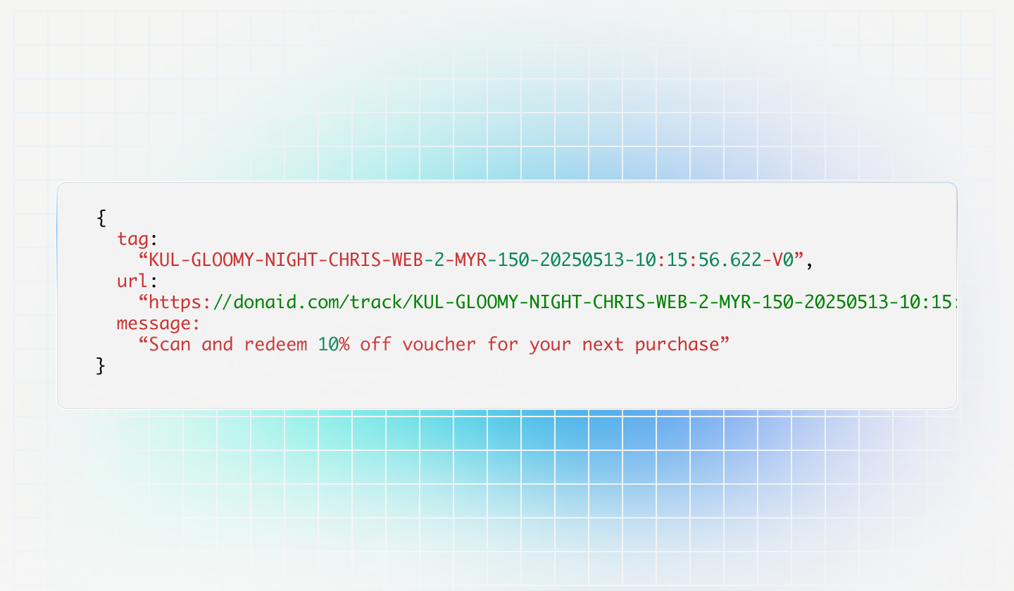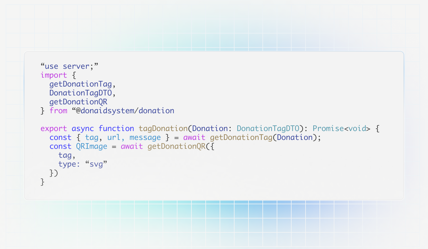 Our server will return the donation tracking reference and QR code, for inclusion in the transaction receipt